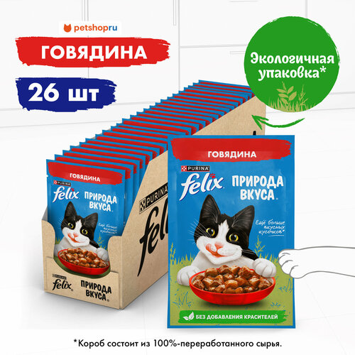 Felix Паучи для кошек, кусочки в соусе с говядиной, Природа вкуса, 26шт