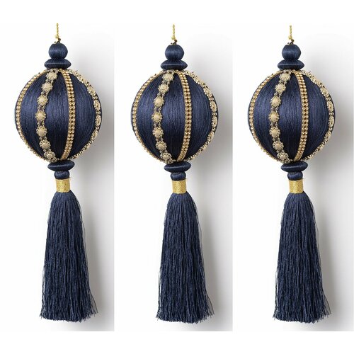 15230 Набор из 3-х синих шаров с узором и кисточкой 28 см Karlsbach