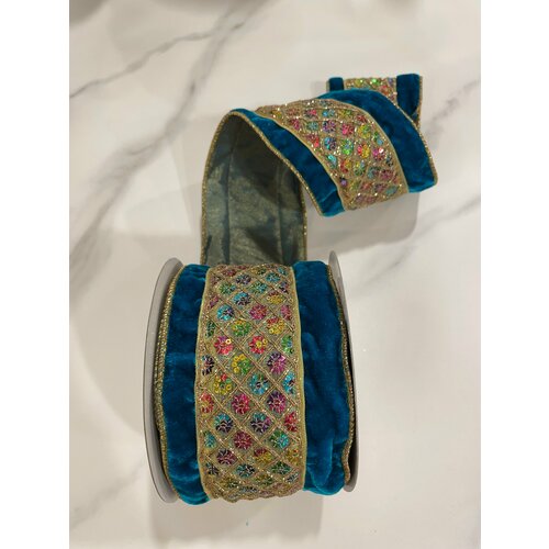 15534 Лента бирюзовая с радужным узором 10 см*4,5 м Karlsbach