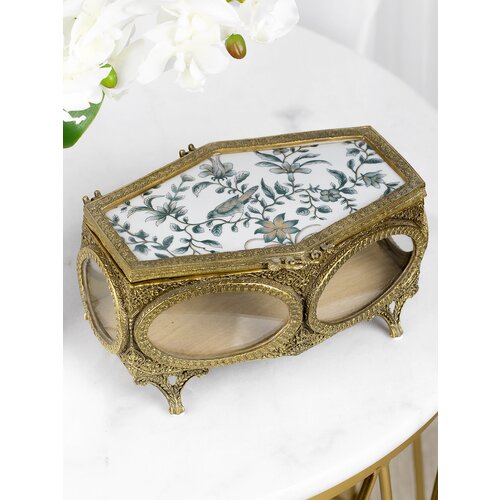 31G2477/J693C/HLG0752 Шкатулка с птичкой 10x9x10см, Glasar голубой, золотистый, зеленый