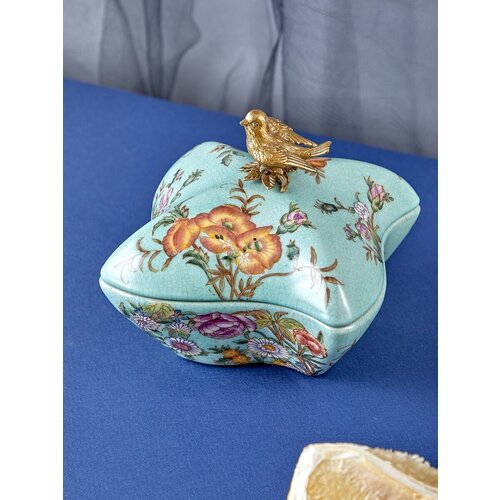 желтый, голубой, зеленый, золотистыйШкатулка с птичками. Уникальное изделие ручной работы. При производстве этих художественных изделий из фарфора с бронзой используются вековые традиции китайских мастеров. Видимые трещинки (кракелюры) делаются по уникальной технологии, что придает более благородный вид старинного изделия. Размер: 10х10х10см. Материал: Фарфор, бронза. Вес изделия: 0,391 кг. Компания "GLASAR" более 30 лет радует своих покупателей эксклюзивной продукцией для создания неподражаемого стиля, красоты и уюта в каждом доме. Ассортимент коллекционных изделий позволит подобрать товары в одной цветовой гамме для создания дизайнерских композиций. Шкатулки представлены в различном ассортименте: ручной работы, настольные, интерьерные, под старину, в виде книг, с фигурками людей, животных, птиц, цветов. Различные конфигурации: классические, тематические, геометрические: овальные, квадратные, круглые, прямоугольные, многогранные. Различные стили: дворцовый, классический, винтажный, античный, модерн, лофт. Декоративные шкатулки выполнены из раз