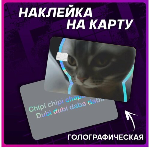 Голографическая наклейка на карту банковскую котик чипи чипи чапа чапа
