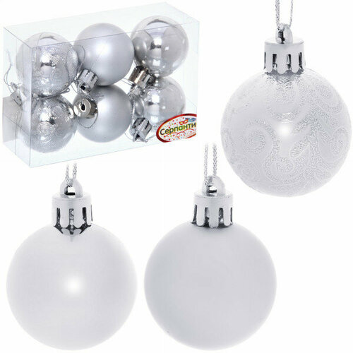 Новогодние шары 4 см (набор 6 шт) "Микс фактур", серебро