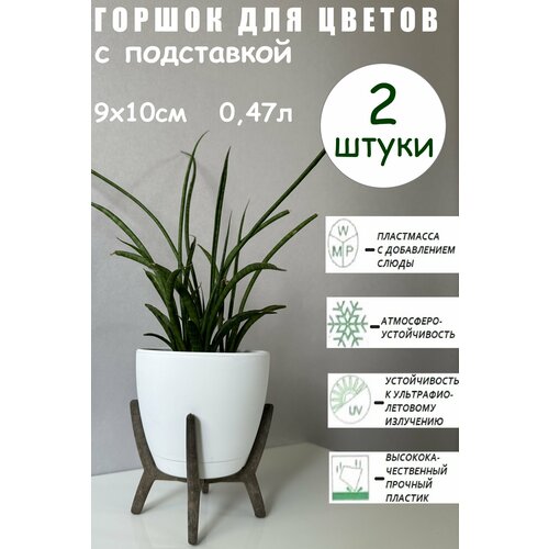 Горшок для цветов с подставкой Mehrni, пластмасса+слюда, 10х9см, 0,47л, 2 штуки в наборе