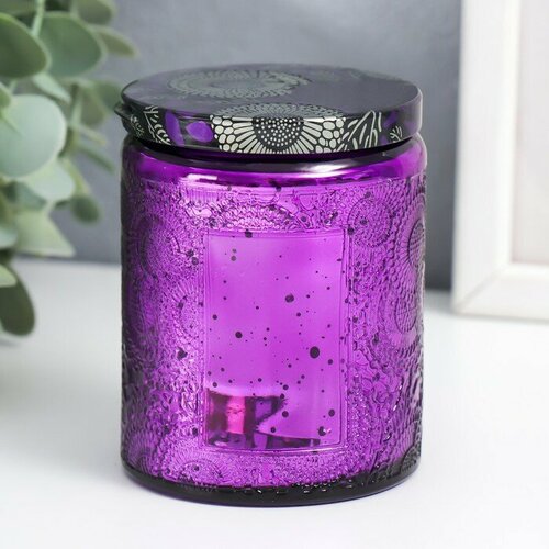 Банка для свечей стекло с крышкой "Цветочная" фиолет, цилиндр, гальваника 9х7х7 см