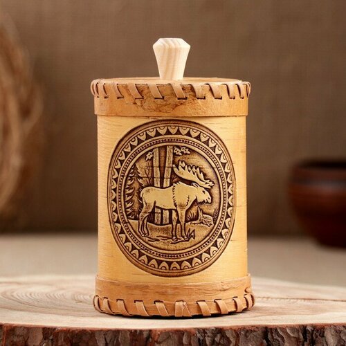 Туес "Лось", 8 х 8 х 14 см, береста