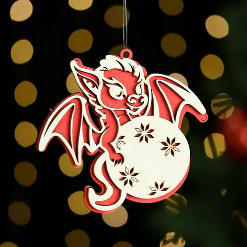 Ёлочная игрушка "Дракоша", дерево, двухслойный, красный