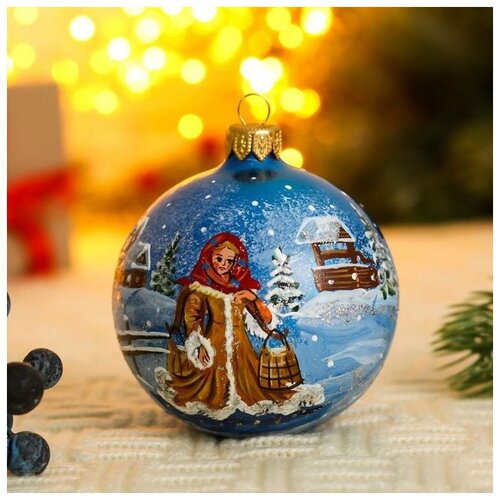 Ёлочный шар d-8 см "Русская красавица" ручная роспись, синий 7304130