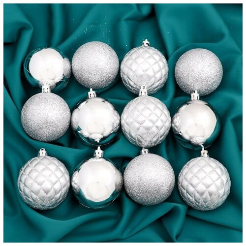 Набор шаров пластик d-6 см, 12 шт "Ларго" серебро