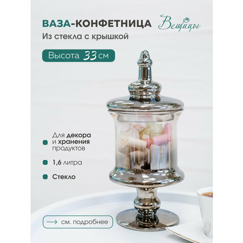 Ваза-конфетница ВеЩицы с крышкой, из стекла, 14.5х33 см