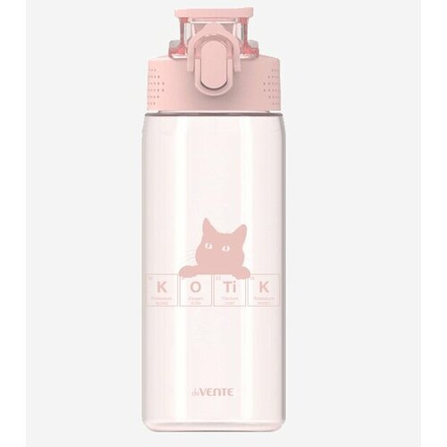 Бутылка пластиковая 550 мл Kotik, с кнопкой и предохранителем, с встроенной пластиковой петлей, розовая