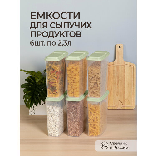 Комплект емкостей для сыпучих продуктов 2,3л, 6 шт (Зеленый)