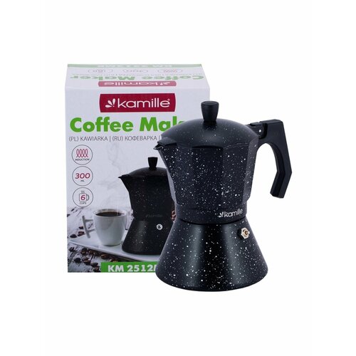 Кофеварка гейзерная 300 мл. 6 порций Kamille KM 0551 из нержавеющей стали (0,3 л. / серебристый)