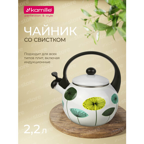 Чайник 2,2 л. эмалированный со свистком Kamille KM 1031 с черной бакелитовой ручкой (1031 /)