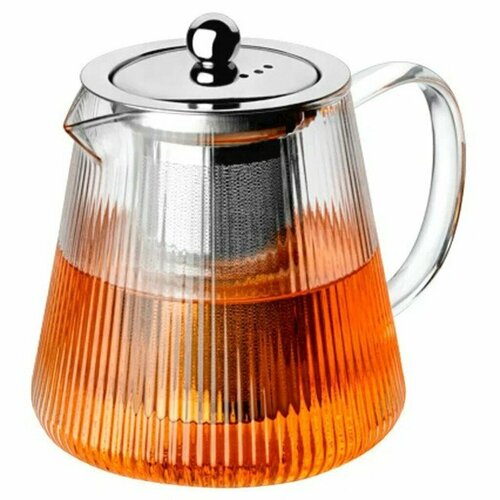 Чайник заварочный стекло, нержавеющая сталь, 0.75 л, с ситечком, Apollo, Stripe-type, STR-750