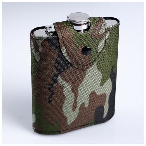 Фляжка 240 мл, хром, в чехле хаки./В упаковке шт: 1