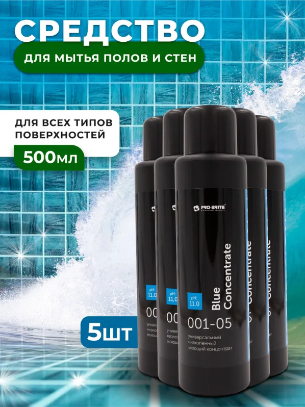 Средство для мытья полов и стен Pro-Brite Blue Concentrate, 5 шт х 500 мл 600013893136