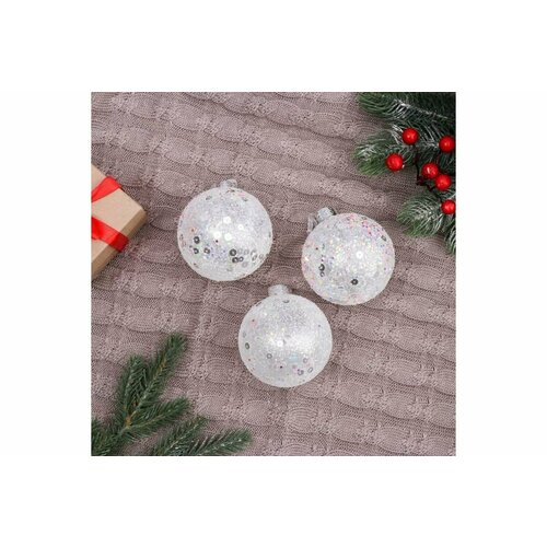 Набор шаров Зимнее волшебство, пластик, d-8 см 3 шт, Снежное царство звездопад, белый 6938991