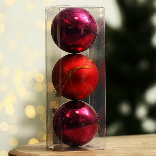 Набор ёлочных шаров "Верь в мечту!", пластик, d-8, 3 шт, красный и винный