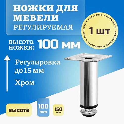 Ножки для мебели, ножка опора Регулируемая для дивана, кресла, высота 100 - 115 мм, диаметр 30 мм, 1шт
