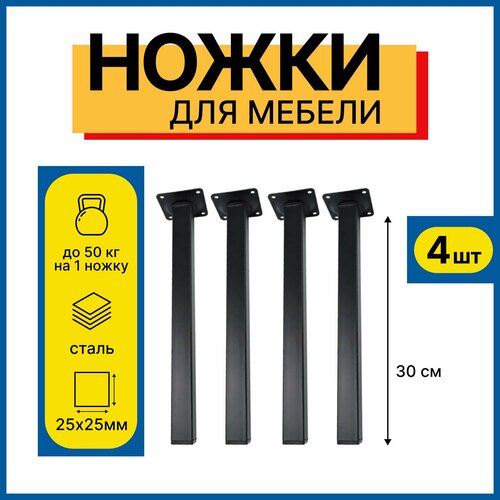 Ножки для мебели 300 мм, квадратная 25х25мм, 4 шт/ ножки мебельные