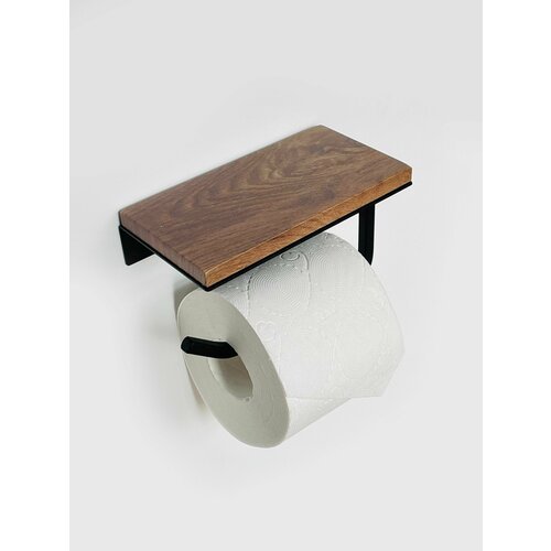 Полка №1 Держатель для туалетной бумаги с полочкой "Орех тёмный" на черном