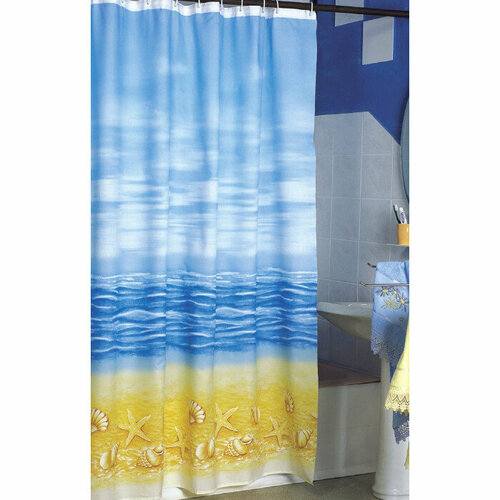 Шторка для ванной полиэстер 180х200 с кольцами "Морская" (З)