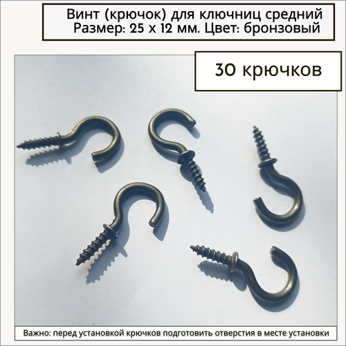 Крючки 25x12 мм для ключниц бронзового цвета, 30 штук