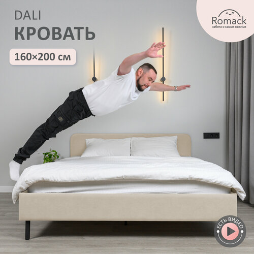 Кровать 160х200 двуспальная Romack Dali Светло-бежевый велюр, на ножках с ортопедическим основанием