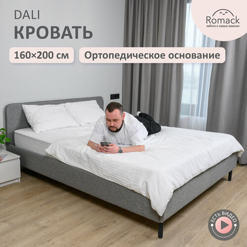 Кровать 160х200 двуспальная Romack Dali рогожка Грей, на ножках с ортопедическим основанием