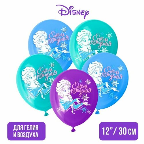 Воздушные шары цветные "С днем рождения!" Холодное сердце,12 дюйм (набор 15 шт)