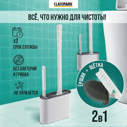 Ершик для унитаза туалета силиконовый настенный подвесной и на пол с подставкой + щетка для чистки и мытья