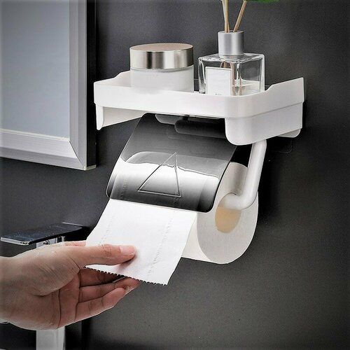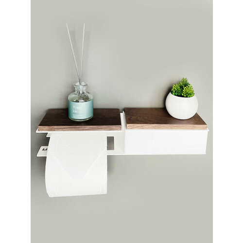 Держатель для туалетной бумаги с деревянной полкой с ящиком. Полка №3Б "Орех темный" на белом
