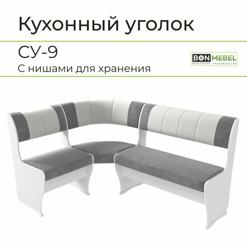 Скамья угловая СУ-9, BONMEBEL, Белый/серый- жемчуг, 110х150х85 кухонный уголок