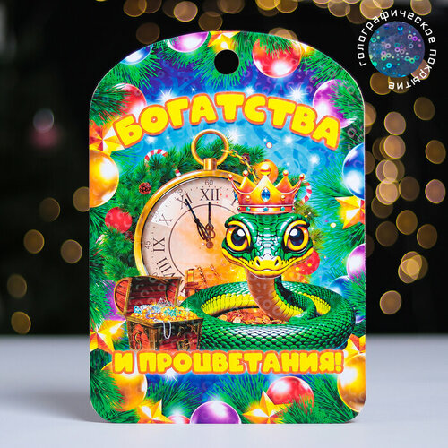 Доска разделочная сувенирная с рисунком "Змейка волшебства"- Дарим красиво - Новогодний подарок 27.5х19.5 см, 1 шт золотистый, желтый, оранжевый, коричневый, зеленый, черный