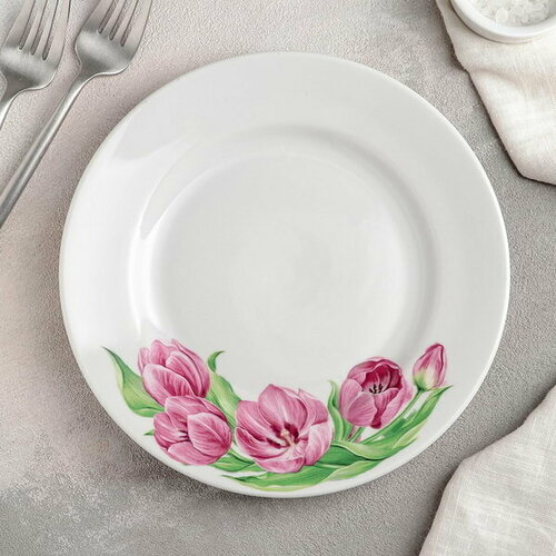 Тарелка "Розовые тюльпаны", d=20 см, белая, фарфор