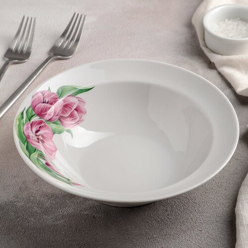 Дулевский фарфор Миска «Розовые тюльпаны», 500 мл, d=20 см