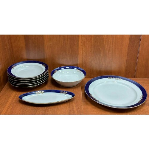 Фарфоровый Сервиз 9 предметов "Роза" Кобальт! Дулево! 1993 год