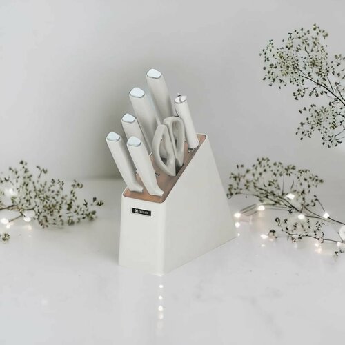 Набор кухонных ножей из нержавеющей стали овощечистка и ножницы, Zeidan на подставке, 9 предметов