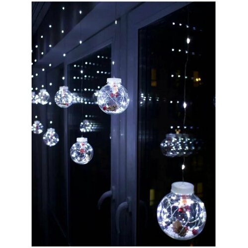 Гирлянда-занавес "Дед Мороз в снегу" 8 режимов, 10 шаров, светодиодная, 3х1м, питание от сети. Цвет белый