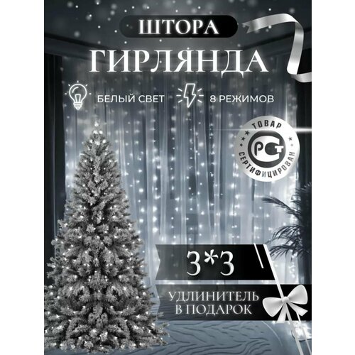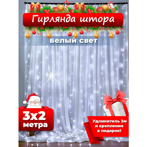 Новогодние украшения светодиодная гирлянда штора, занавес 3 на 2, холодный