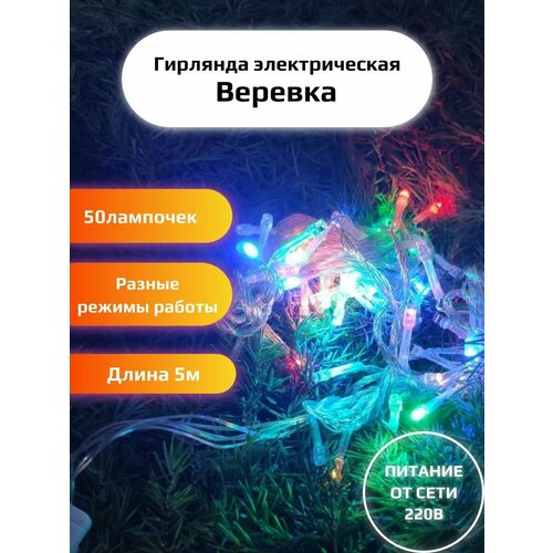 Гирлянда Веревка разноцветная мерцаемый свет 50 ламп