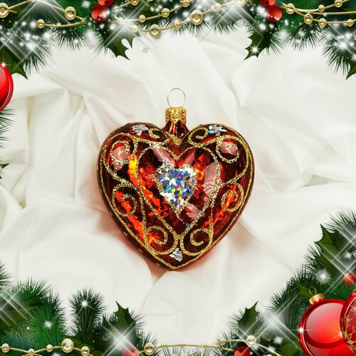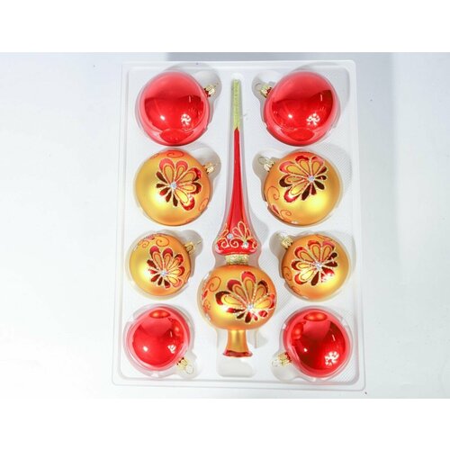 Набор ёлочных игрушек грёзы, верхушка+4х60 мм+4х75 мм, золотой с красным, Елочка С 2029-зол-кр