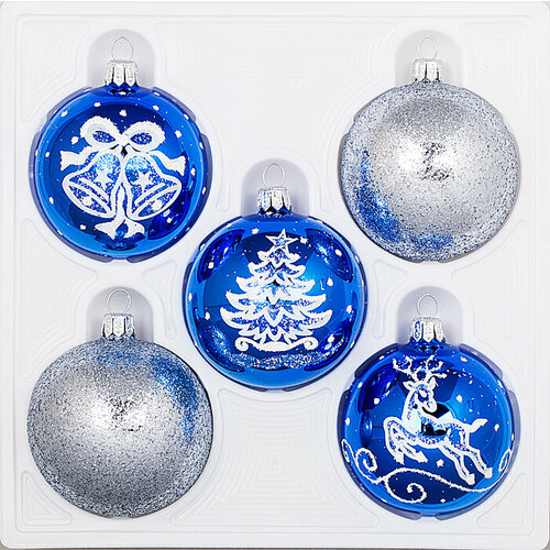 Набор ёлочных шаров 5х60мм "Зимовье" (Ёлочка) синий с голубым