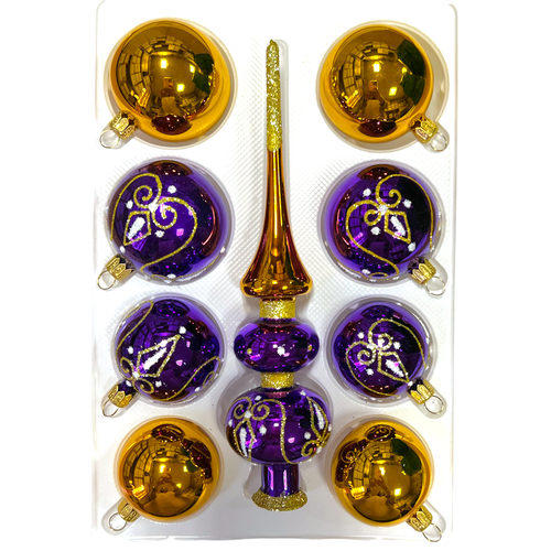 Набор ёлочных шаров с верхушкой "Адель" (Ёлочка) фиолетовый