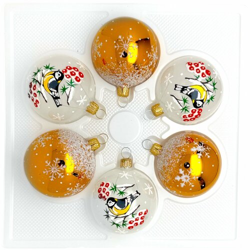 Набор ёлочных шаров 6 х 50 мм "Синички" (Ёлочка) золотой