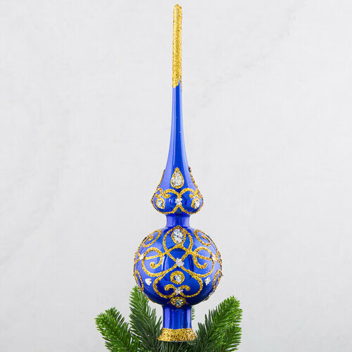 Елочка Елочная верхушка Вензель 28 см синяя, стекло С 2148