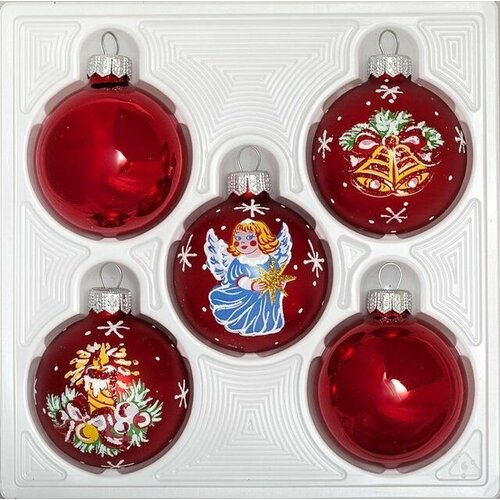 Набор ёлочных шаров 5х60мм "Рождественский" (Ёлочка) красный