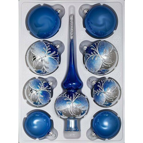Набор ёлочных шаров с верхушкой "Василиса" (Ёлочка) синий