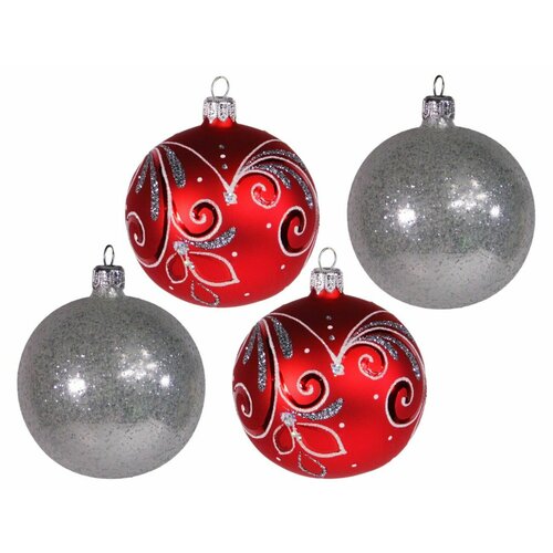 Набор стеклянных шаров вальс, красный, 4х75 мм, Елочка С 2028-красный